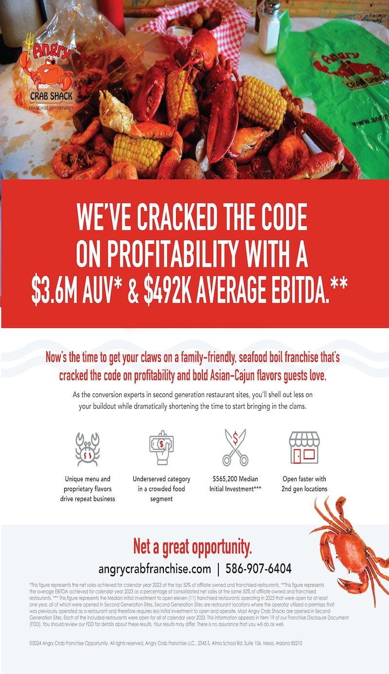 Angry Crab Shack is a full-service dine-in restaurant specializing in seafood boil with bold Asian-Cajun flavors that are unique to the brand and irresistible to guests. Their seafood menu is designed to be prepared and served quickly with the freshest seafood and sides cooked in boiling water, then sauced and spiced with its proprietary sauces (no chef needed). It’s served in a fun, casual environment where the prices and the memories make it a popular choice for guests of all types. It’s no surprise that Angry Crab Shack copycats are popping up around the nation. Don’t miss your chance to get on board with the original concept that’s delighting our fans and Franchise Partners. Founded in 2013 by Ron Lou and headquartered in Mesa, Arizona, the seafood concept began franchising in 2016 and has since grown to 23 locations throughout the United States after opening two new locations recently in Kennesaw, GA and Prescott, AZ. In addition to its first international location in the UK, the brand has exciting plans to keep expanding internationally, including through its UK Master Franchisee who will open a second location this October and a third location in the first quarter of 2025. Angry Crab Shack aims to have 100 locations open and operating by 2030.
